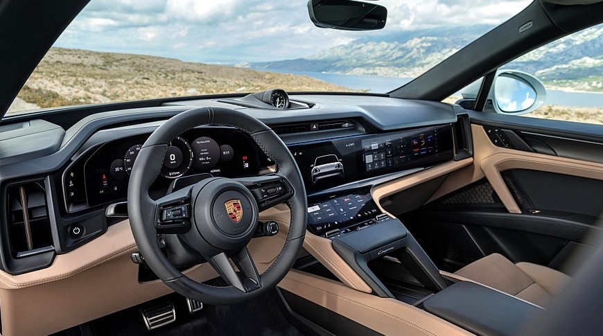 С места водителя Cayenne Coupe Electric ничем не отличается от Cayenne Electric, но пакет Sport Chrono входит в базовую комплектацию. Заднее сиденье по умолчанию двухместное, но вместо него можно выбрать диван формата 2+1 с неудобным «тёщиным местом» посередине. Запас пространства по высоте у купеобразной версии поменьше, чем у Cayenne Electric, а подушки задних сидений не регулируются в продольном направлении, можно лишь менять наклон спинок. Объём переднего багажника такой же, как у Cayenne Electric, — 90 л, а вот основной задний багажник из-за изменённой формы кормы уменьшен с 781 до 534 л (у Cayenne Turbo Coupe Electric — c 747 до 500 л).