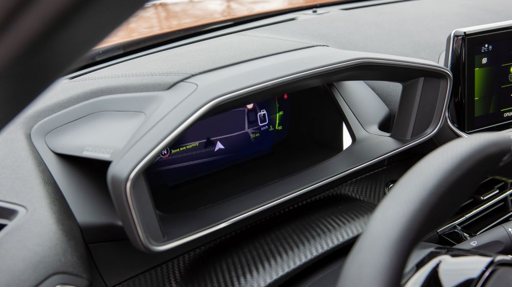 Собственно, главная особенность интерьера нового Peugeot 2008 – это сохранившаяся от предшественника компоновка, когда на приборный щиток приходится смотреть не «сквозь» руль, а поверх него. К этому мы уже как-то попривыкли, и многие даже нашли в этом свою прелесть, а вот к новой 3D-комбинации привыкнуть будет непросто. За исключением крупной доминантной цифры всё остальное на ней выглядит откровенно мелковатым. Да, «приборка» технологически безупречна, да, она даёт массу возможностей по конфигурации, инженеры сохранили простую логику управления данными, однако мы всё же рекомендуем базовую компектацию Active, оснащённую аналоговыми приборами с живыми «стрелками» и циферблатами.