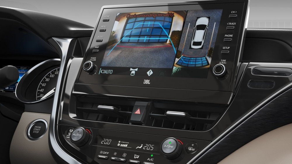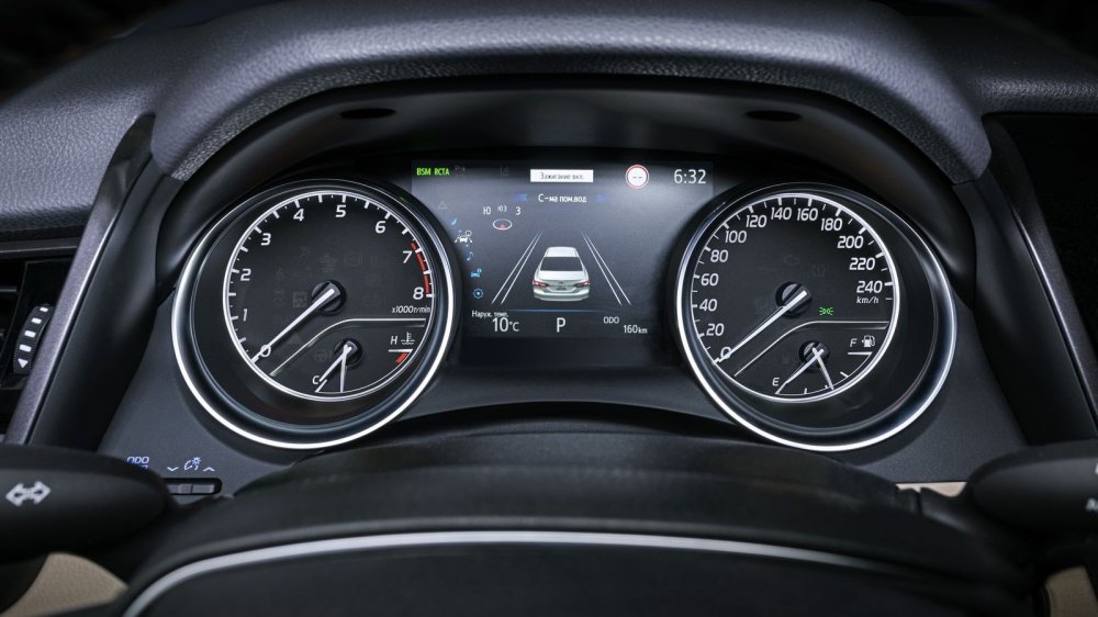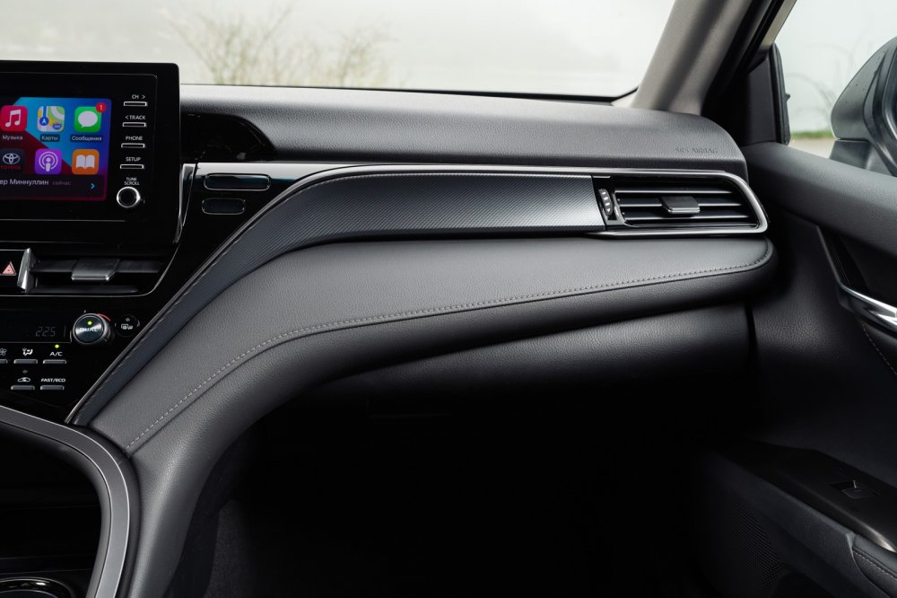 В обновлении салона японцы следовали тем же принципам «не навреди» и «не трогай то, что работает». Например, фокус-группы не высказывают нареканий на аналоговые шкалы приборной панели, так что полностью цифрового щитка с приборами, нарисованными на экране, в списке оснащения по-прежнему нет, как нет и электропривода крышки багажника, а подрулевые лепестки по-прежнему остаются прерогативой машин с 3,5-литровым мотором. Остались на месте и мелкие эргономические огрехи: например, клавиша включения подогрева руля так и осталась в слепой зоне слева под рулем, а не переехала на сам руль. Впрочем, не обошлось без маленькой революции: прорезь для компакт-дисков на центральной консоли, остававшаяся визитной карточкой еще с Camry в кузове XV40, наконец-то ушла в прошлое.
