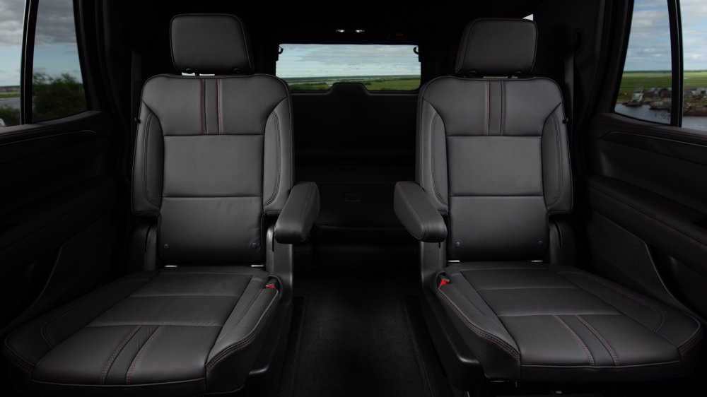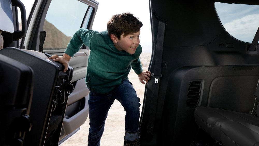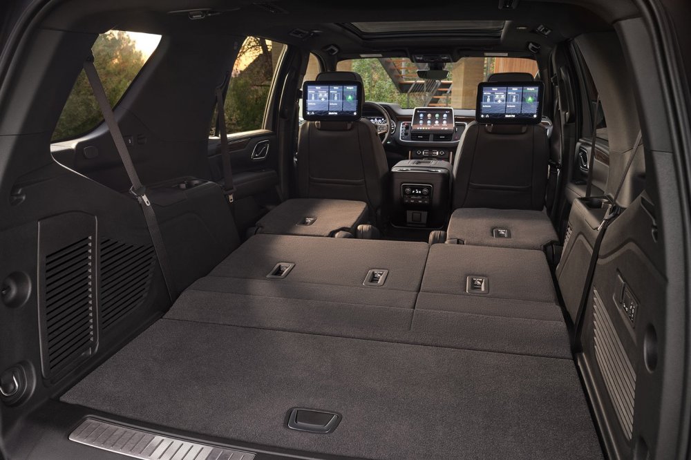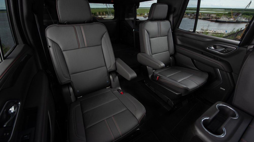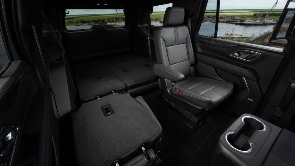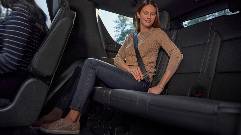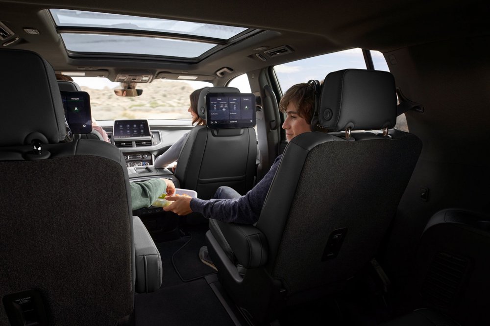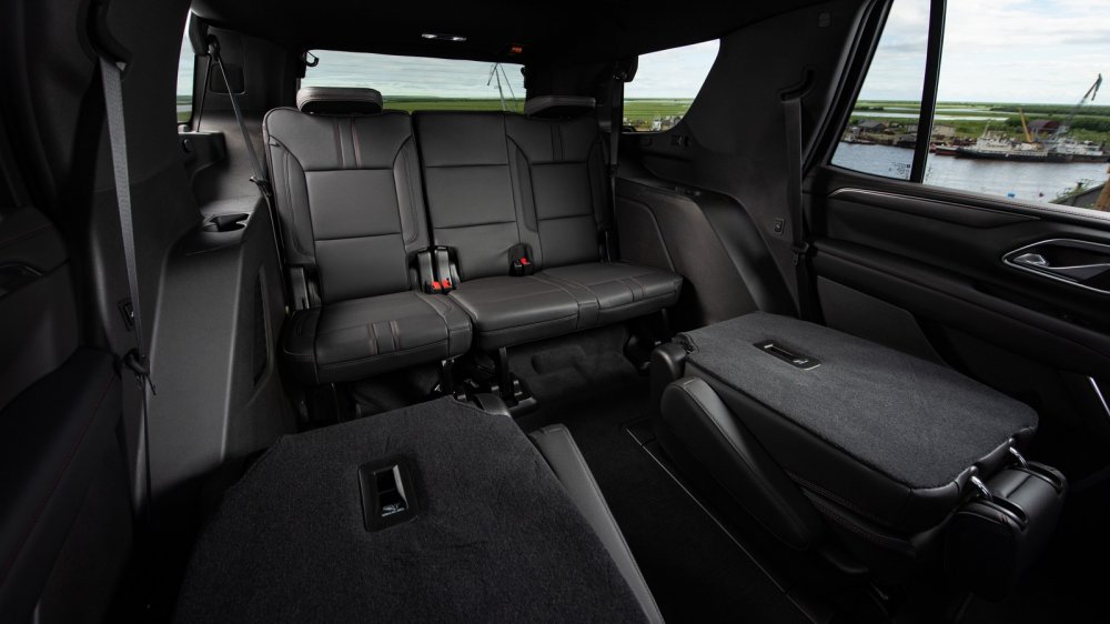 Да, на третий ряд сидений в Tahoe не надо заползать, как в кроличью нору, и совершать невероятные гимнастические упражнения. Конечно, в случае восьмиместной версии (с трехместным диваном на втором ряду) придется все-таки сложить хотя бы его часть, но если у вас семиместный вариант с двумя задними «капитанскими» креслами, то можно просто пройти на «галерку» по проходу между ними. А самое главное – больше никто не будет ехидничать, что у пассажиров третьего ряда – лучшая звукоизоляция, потому что колени уши затыкают: пространство для ног на третьем ряду выросло на 254 мм. А все новая конструкция рамы с другим изгибом задних восходящих ветвей, новая независимая задняя подвеска и увеличенная колесная база. Ну и возможность двигать сидения второго ряда вперед-назад на 140 мм.