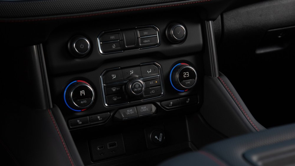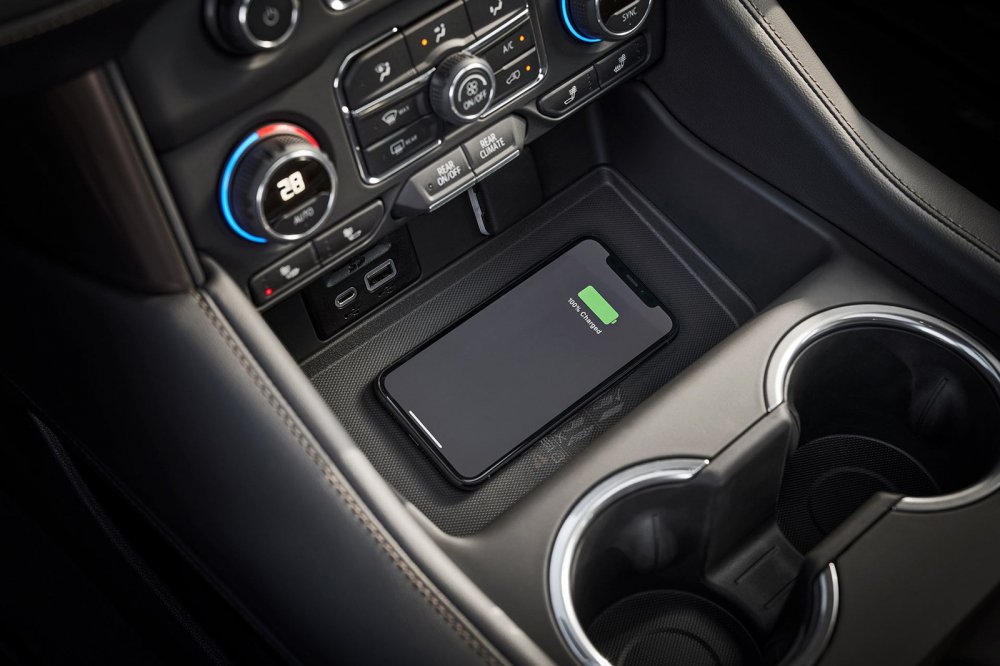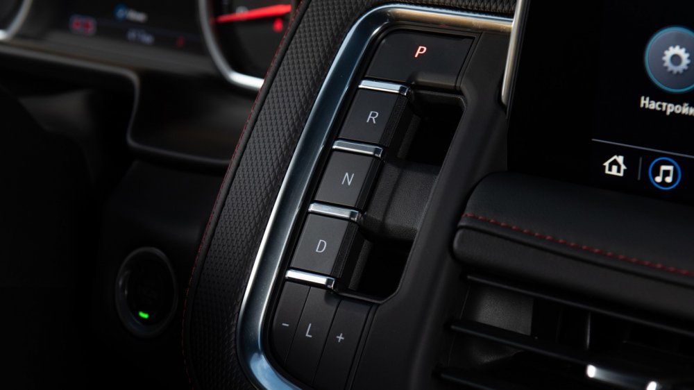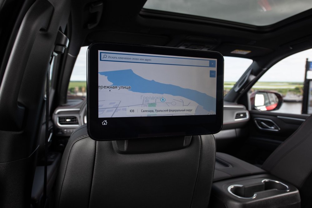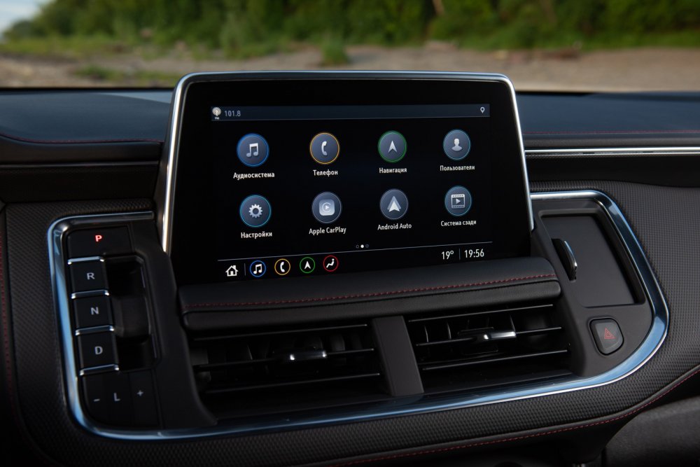 Очень неплох тачскрин головного устройства – яркий, четкий, быстрый, не бликует. По размеру (10,2”) он больше, чем в предыдущем Тахо, но меньше, чем в Escalade, и, в отличие от обеих упомянутых моделей, оформлен в виде отдельного планшета. Жаль, что при этом исчезла и такая милая фишка, как потайная ниша за дисплеем, куда можно было спрятать что-нибудь ценное или просто положить подлинкованный смартфон. Зато теперь этот смартфон можно пристроить на площадку беспроводной зарядки, которая переместилась с крышки бокса-подлокотника на трансмиссионный тоннель. Впрочем, специальная площадочка для телефона на крышке тоже осталась, но это просто углубление с нескользящим покрытием.