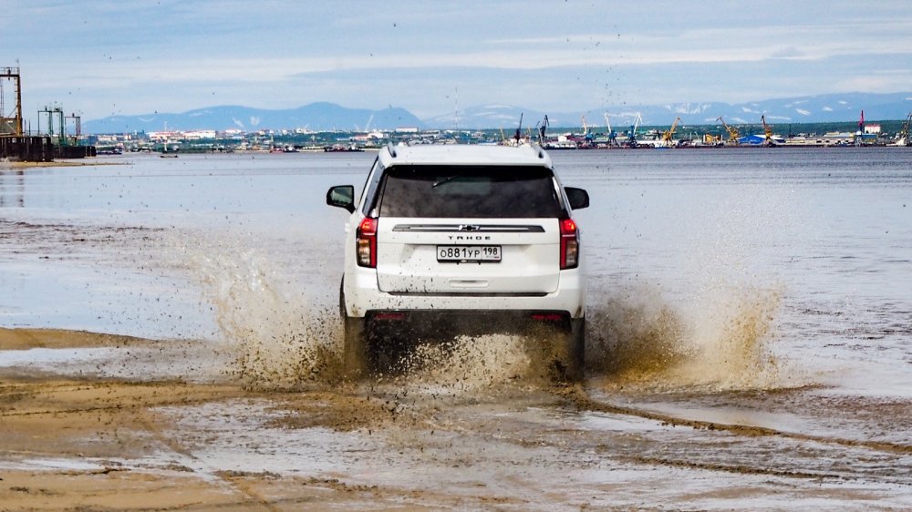 Кстати, именно плавность хода на плохих дорогах стала для меня самым большим разочарованием в случае предыдущего поколения модели: на асфальте из серии «лучше бы его вообще не было», с бесконечными ямами и дырами, Tahoe превращался в натуральный костотряс. Энергоемкости подвески явно не хватало, в таких условиях она демонстрировала избыточную жесткость, и все удары колес о препятствия исправно передавались на кузов. Зато нынешнее поколение из такого рода испытаний выходит с честью: даже на неровном, разбитом грузовиками грейдере, идущем через долину Енга-Ю к рудникам массива Рай-Из, обитатели салона Tahoe не испытывали никакого дискомфорта (при том, что на нашем автомобиле стояли низкопрофильные шины на 22-х дисках). Я даже попробовал слегка «пошалить» – пройти несколько поворотов в раллийной манере, с боковым скольжением. И ведь получается, если особенно не усердствовать и не переходить границы возможного: короткое энергичное движение рулем, скольжение, перекладка и стабилизация газом.