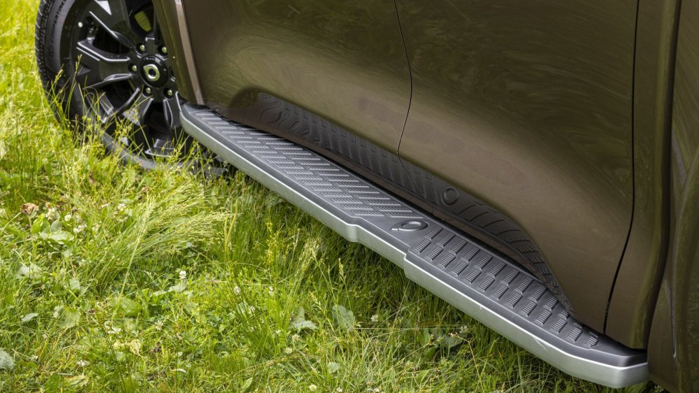 Пол и стенки кузова в комплектации Premium обработаны защитным покрытием против царапин и коррозии (кстати, кузов оцинкован под крышу), да и скользишь на таком меньше. Ныряю под днище: тут ровный слой антигравия и антикоррозийки. Под стальной защитой картера 232 мм, воздухозаборник выведен под самый капот, так что можно форсировать полуметровые броды. Колесные арки и бамперы прикрыты пластиковыми накладками, пороги берегут боковые подножки. На первый взгляд все солидно и готово к бездорожью.