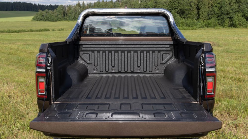 Очевидные козыри – солидные габариты в сочетании со сдержанным дизайном. Посмотришь издалека: Chevrolet Colorado? Ford Ranger? Точно! – Toyota Tundra десятилетней давности в миниатюре. Согласитесь, не самые грустные ассоциации. Длина Поэра 5403 мм, ширина 1934 мм, высота 1886 мм – он крупнее всех конкурентов на российском рынке. В нашей стране пикапы никогда не ассоциировались с рабочей лошадью, а потому варианты с однорядной кабиной не в почете и, как правило, не в продаже. Вот и Поер предложен только в пятиместном варианте. При колесной базе 3230 мм на втором ряду места предостаточно. Хорошо и что уровень пола, как это нередко бывает на рамниках, невысок. И впрыгнуть в машину нетрудно, и сидишь, не сгибая в коленях ноги, а еще и центрального тоннеля почти нет.