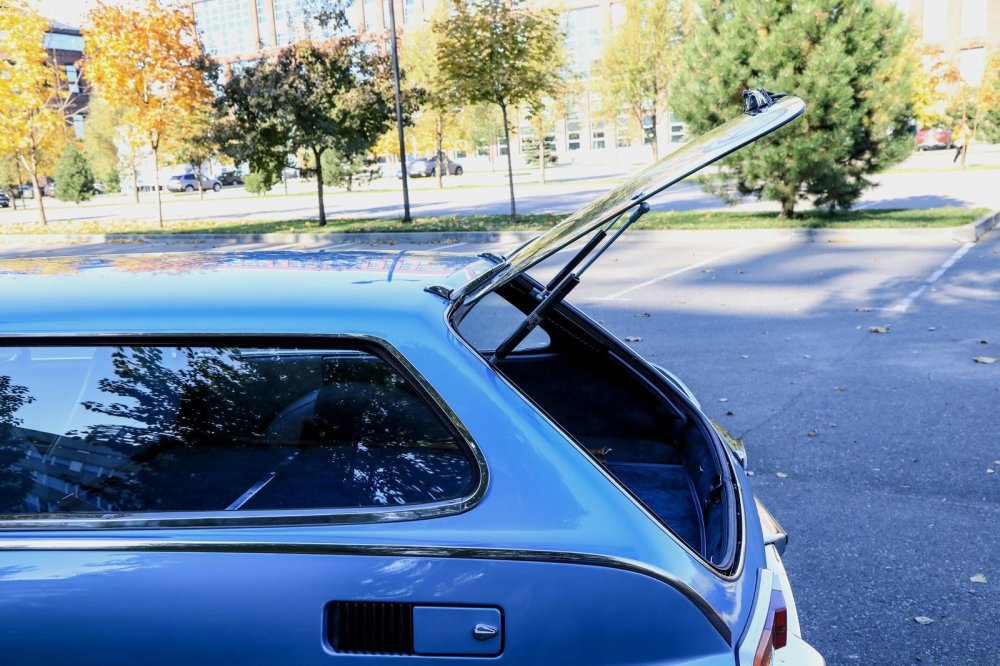 Одна из ключевых деталей экстерьера – полностью стеклянная задняя дверь, чистое стекло без рамок и каркасов, без металла и пластика! Через просверленные в стекле отверстия к двери крепятся петли, газовые упоры и ручка открывания. А герметичность обеспечивает эластичный уплотнитель по периметру проема. Очень стильное решение для своих лет, ничуть не потерявшее броского вида и сегодня. Причем на голову переигрывающее по изяществу заднюю дверь у Volvo C30 года, сделанную в середине 2000-х как раз в виде аллюзии на легендарную P1800!