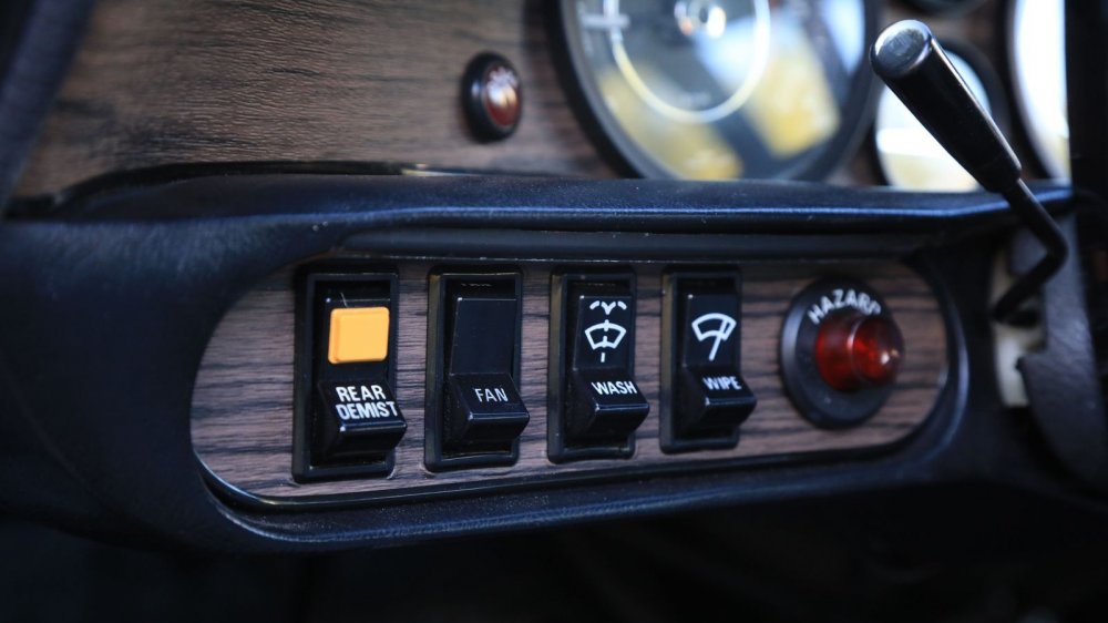 В дизайне салона многим вспомнятся ранние модели «Жигулей», и это ни разу не упрек и не ирония, а лишь типичный для тех лет стиль. Черный пластик с выразительной шагреневой текстурой. Панель приборов с отделкой пленкой под дерево и с дискретными шкалами – мода на интегрированные «приборки» еще не наступила. Крупные перекидные клавиши управления электрооборудованием. Плоские дверные карты, обтянутые винилом и L-образные дверные ручки из плотной резины. Треугольные форточки с поворотными замочками. Голый окрашенный металл на стойках. Тем не менее к эргономике полувековой давности адаптируешься очень быстро! Все в целом удобно, почти все интуитивно нащупывается. Даже для современного автолюбителя не потребуется чтение инструкции, чтобы наскоро разобраться с системой отопления и кондиционирования, чьи органы управления разбросаны по разным сторонам руля: слева включается вентилятор, а дефлекторы и рукоятки управления воздушными потоками находятся справа и, по сути, торчат из-под торпедо