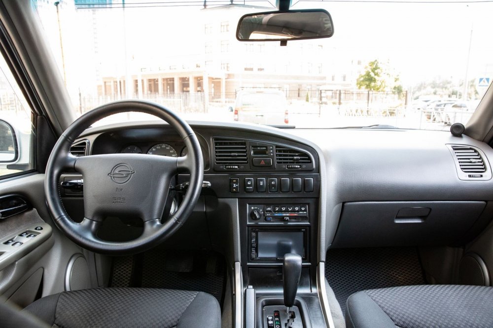 Обзорность у машины шикарная: хорошее остекление с этими характерными узнаваемыми «занижениями» линии передних окон относительно задних, узкие стойки спереди и сзади, крупные и удобные боковые зеркала. Динамика и скорость – с этим не к Musso, конечно – все же 120 сил (пусть и «низовых», дизельных) явно маловато для почти двухтонной машины. Оптимальная крейсерская скорость – 100 км/ч и тщательное продумывание всех обгонов. В этом симбиозе двигателя, трансмиссии и массы неспешный ритм движения безальтернативен.