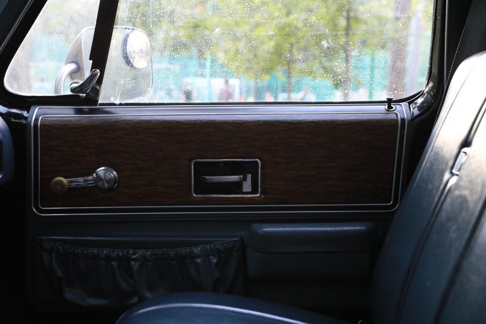 Кстати, несмотря на скромную площадь дверных карт, совсем уж примитивными их не назвать! На них расположены и жесткие закрывающиеся лотки для мелочей, и мягкие карманы-«сумки», и панель с простейшей, но все же имитацией дерева «ценных пород», да еще с молдингами по периметру. Плюс карта не плоская, как это делали часто в те же годы, а с изгибом, закрывающим кромку торца двери под стеклом! В общем, все сделано с претензией на некоторую интересность, насколько она вообще возможна в утилитарной машине для перевозки кирпичей или дров!