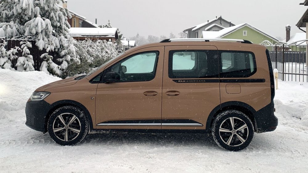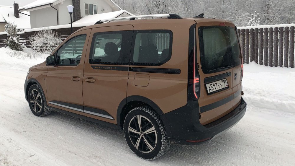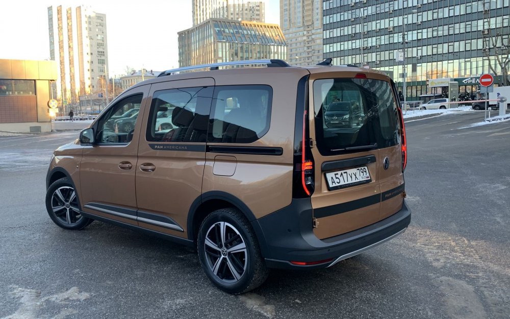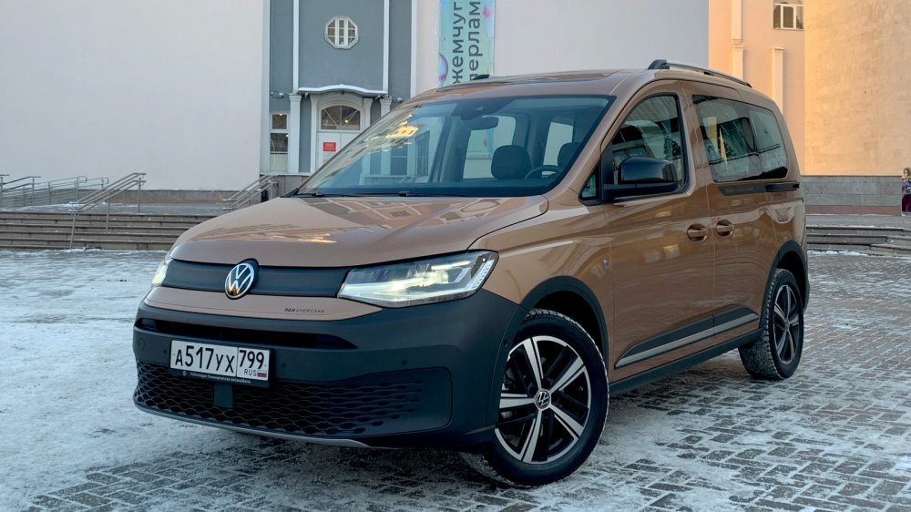 Сколько-сколько? Все верно: Caddy пятого поколения стоит от 1 986 300 – и это в варианте Cargo V, а за пассажирскую версию просят минимум 2 274 400 рублей. Что мы получаем за кругленькую сумму? Взяв на тест Caddy пятого поколения в топовой комплектации Panamericana, я первым делом рванул к приятелю. По работе парню приходится возить по городу объемные грузы на личном транспорте. Покупать второй специально для семьи – не вариант: бюджет не выдержит содержания, мест для парковки тоже нет. Нужен один универсальный вариант. И с этим загвоздка! Лада Ларгус слишком утилитарна, других по-настоящему вместительных «сараев» на нашем рынке не осталось. Кроссоверы С-класса навскидку солидны, но заглянешь в багажник и понимаешь – маловат. Большие паркетники фактически стоят от 4 миллионов, да и жалко их грузить: и подвеска не всегда рассчитана, и отделка «нежная». Микроавтобусы вроде Peugeot Traveller великоваты для города. Остаются каблуки – Citroen Berlingo, Peugeot Partner, Opel Combo. Цена приятная, все необходимые навороты есть, агрегаты надежные, предложены в том числе дизель и автомат. Но тут всего пять мест в салоне, а хочется семь. В итоге под специфические требования подходит только Volkswagen Caddy. Он у друга есть, уже немолодой, восьми лет от роду. Год назад, когда в Калуге стали собирать французские «каблучки», ездил к дилеру и собирался уже оформить покупку, но в апреле объявили о скором появлении у нас нового Caddy – решил подождать. Теперь кусает локти! Мол, знал бы, что так взлетят цены и будут такие дилерские накрутки, а Volkswagen затянет с доставкой «живых» машин, купил бы французско-немецкий каблук, плюнув на третий ряд. А раз уж время упущено, можно опять помечтать о новом Caddy. Грузо-пассажирский Интерьер машины приятеля незатейлив и аскетичен, особенно это чувствуется на фоне Caddy 2022 модельного года. Разнофактурные пластики и затейливая передняя панель однозначно смотрятся «дорого-богато», по-немецки отменно спрофилированы сиденья ErgoComfort с выдвижными ящиками, необычна и явно износостойка отделка в черно-коричневой гамме. С конфигурацией цифровой приборки можно играть бесконечно, выводя вместо традиционных спидометра и тахометра данные борткомпьютера или же раскрыть на весь экран карту навигации. Впрочем, такие приборы по умолчанию идут лишь на Панамерикане, а в машинах попроще за них придется выложить полсотни тысяч, как влетит в копеечку и шикарная панорамная крыша с теплоизолирующим стеклом (68 тысяч рублей), и индукционная площадка беспроводной зарядки (плюс 34 тысячи рублей). Дорого? Зато машину можно собрать по своему усмотрению. Даже доступ в багажник на выбор либо с двумя задними распашными дверьми или одной подъемной. Минимум физических кнопок – это тренд. Здесь даже потолочный свет сенсорный! Значит ли это, что так удобнее? Мне однозначно понравилось лишь одно решение – слайдер громкости медиасистемы Discover Media с тачскрином диагональю 10 дюймов. Особенно спорным показалось управление климатом с «умным» режимом, требующим бороздить меню, даже чтобы просто уменьшить интенсивность обдува. Тачскрин после старта в холод долю секунды тормозит с откликом, да и на мокрые после очистки от снега руки реагирует не всегда. Поэтому периодически промахиваешься мимо нужного режима, например, при отключении подогрева сидений. С другой стороны, смотришь на всё это и понимаешь, за что переплачи
