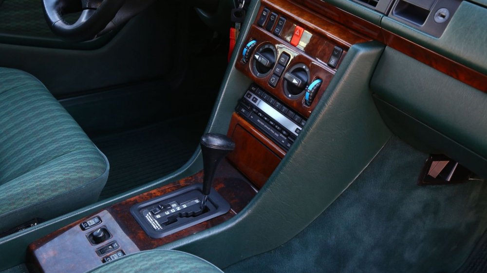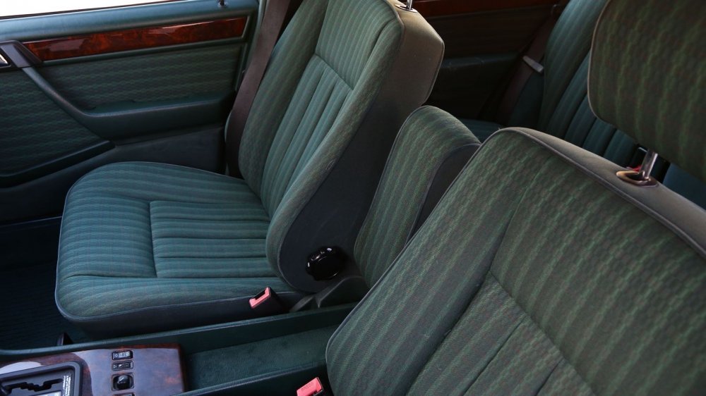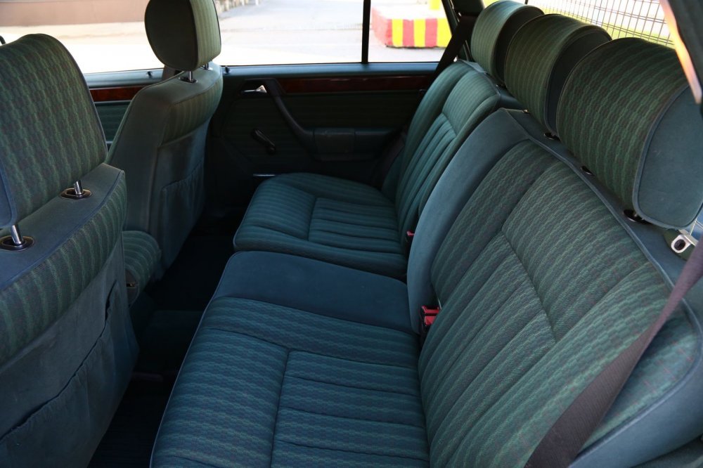 Интерьер этого экземпляра весьма гармонирует с экстерьером. Этот старый «мерин» очень уютный и теплый в плане ощущений. В нем нет черноты и кожаной отделки, в нем явно никогда не возили людей в лес в багажнике и не орали о срывающихся контрактах и курсах акций в огромную трубку штатной Motorola International 1000, которую опционально устанавливали на специальных подиумах у левой ноги переднего пассажира. Благодаря нежно-зеленому кузову и темно-зеленой отделке салона в машине не чувствуется тяжелой ауры бандитского или бизнес-наследия. В прошлом в ней явно звучал детский смех, собачий лай и ворчание тещи. И это хорошо!