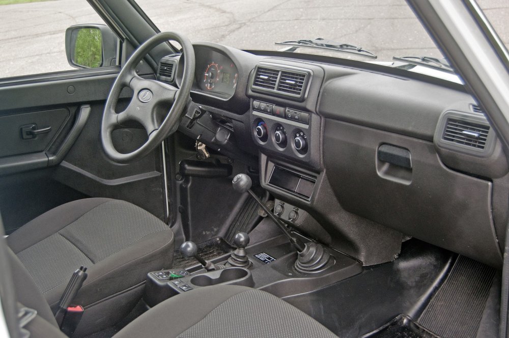 В салоне Нива осталась Нивой. Но «Легендой». То есть, олдскульные рычаги трансмиссии тут сочетаются с кнопкой кондиционера, смешные и куцые салонные ручки открывания дверей – с формованной обшивкой потолка с современной подсветкой и так далее. Оксюморон на колёсах. Но, может, в этом и заключается великая сермяжная правда Нивы? Может, ей и надо быть такой?