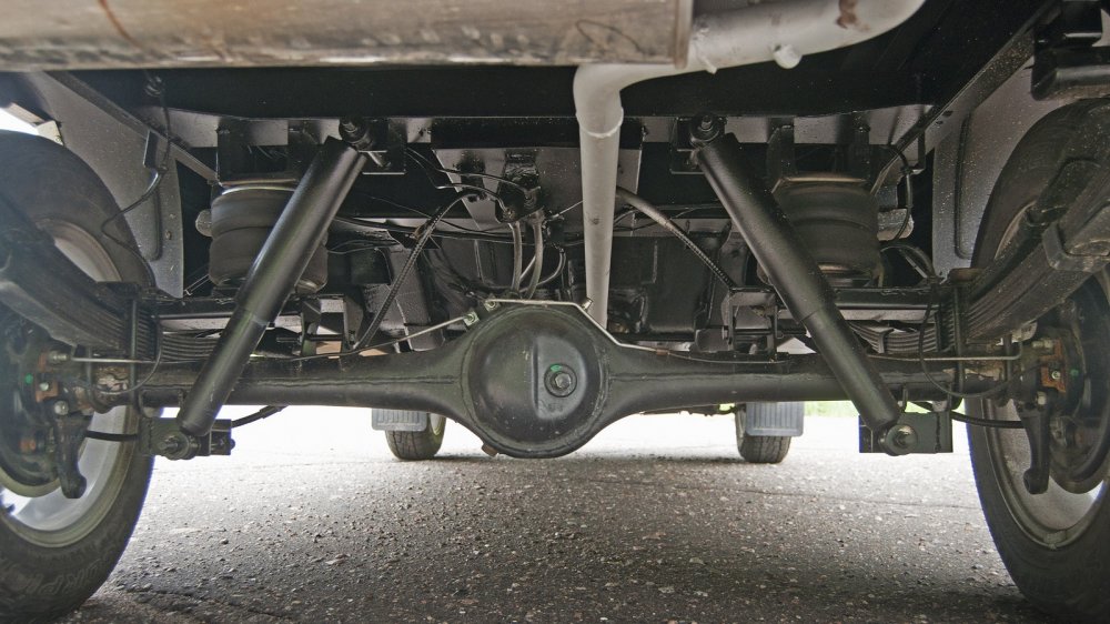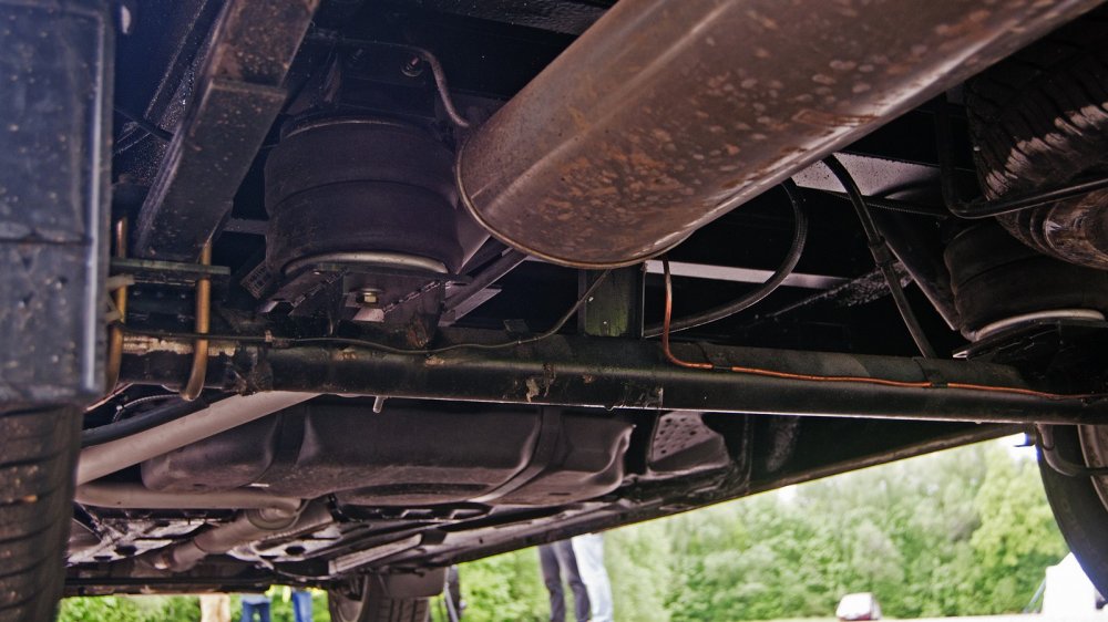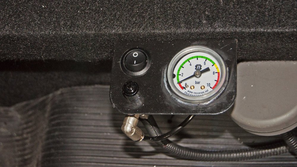 Третье – это такой своеобразный пульт управления пневмоподвеской позади сидений. Можно проверить давление по манометру, можно подкачать баллоны насосом. Схема кажется примитивной, но всё гениальное просто обязано быть простым. А ещё – практичным и надёжным.