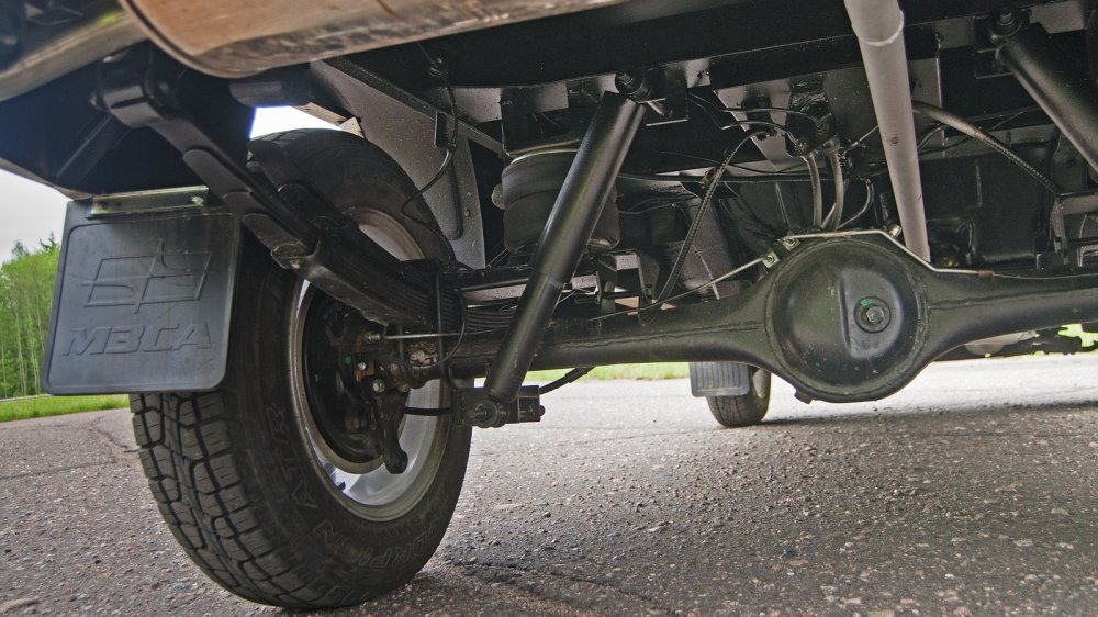 Удивительно, но задняя рессорная подвеска не ухудшила управляемость. Да, пустой фургончик немного жестковат, но на дороге стоит вполне уверенно. Возможно, своё слово сказала база Она длиннее заводской на добрых полметра – с такой длиной Гранта не смогла прыгать и козлить даже на рессорах.