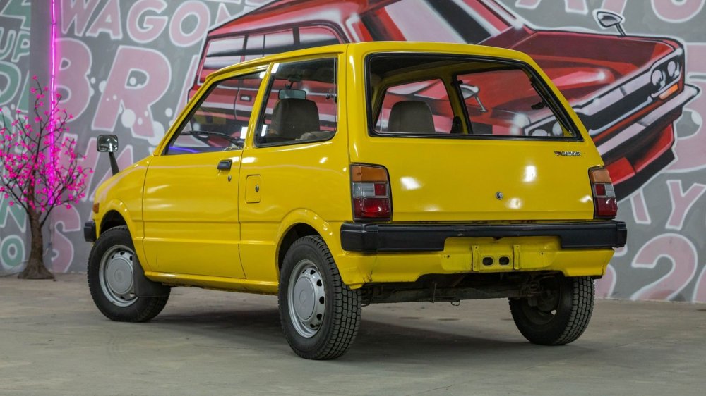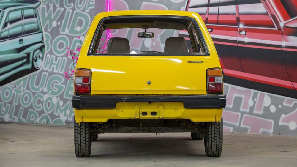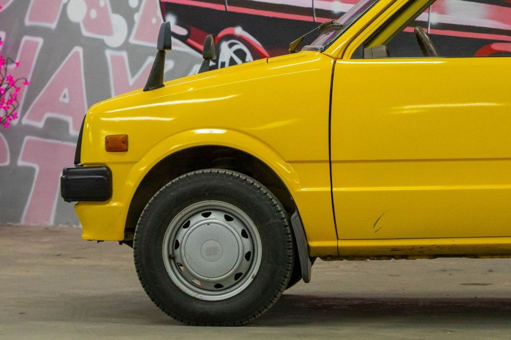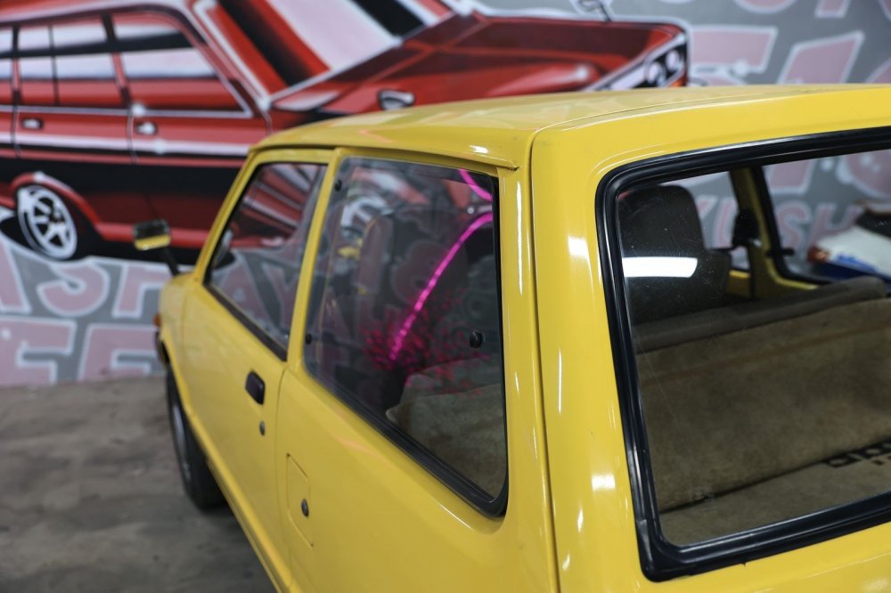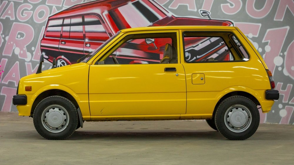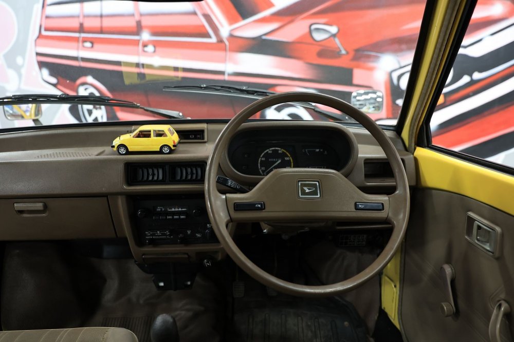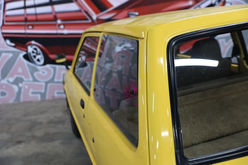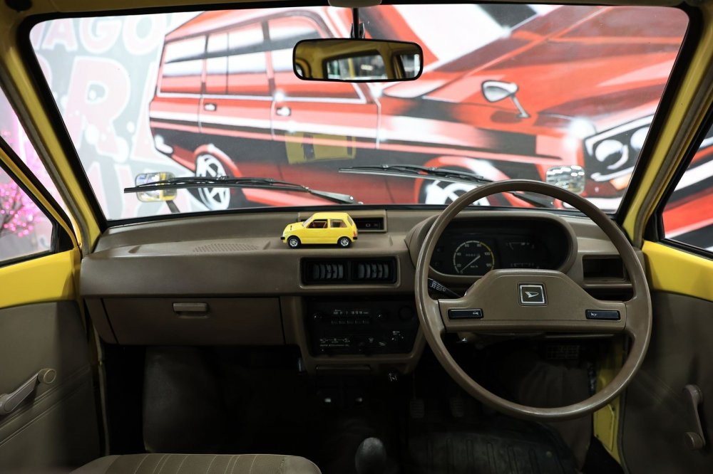 Колеса кажутся идеально гармоничными, но они… незаводские. Трудно поверить, но родные колеса Mira первых поколений – 10-дюймовые! Нынешний владелец заменил их без переделок на 12-дюймовые, поскольку на штатных шинах «от садовой тачки» было просто страшно ездить – машина плавала по дороге, жутко реагировала даже на небольшие ямы, плюс создавалось ощущение, что при любом повороте покрышка готова просто «подломиться».