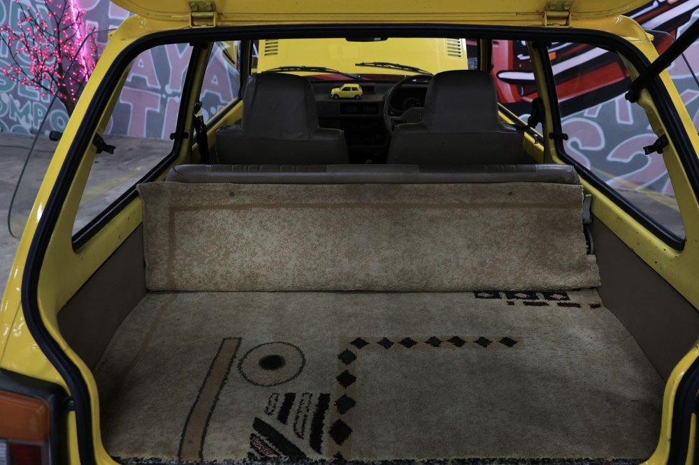 Багажник, в котором уют создает трогательный домашний половичок уже явно не японского происхождения, более просторен, чем заднее сиденье. Погрузочная высота великовата, поскольку снизу под полом подвешена запаска. И все равно это более правильное решение, чем запаска Оки под капотом, представляющая дополнительную опасность при лобовом ударе.