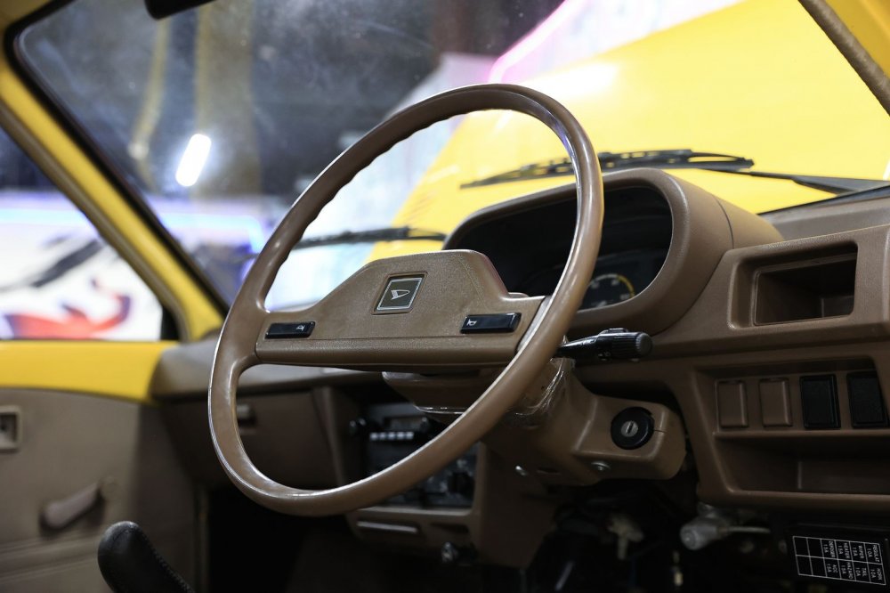 Еще один небольшой нюанс, который трудно передать на фото. А именно – руль, плоскость которого слегка повернута в сторону двери! С непривычки возникает «инстинкт велосипедиста» — хочется зажать рулевую колонку коленями и загнуть баранку, чтобы та встала ровно. Правда, если не обращать на эту особенность слишком большого внимания, то быстро про нее забываешь. Причины подобного явления остались непонятыми, но есть гипотеза. Не исключено, что производитель решил в элементарной машине сэкономить на полноценных карданных крестовинках в рулевом валу, использовав простейшие резиновые эластичные муфты – одну или две… И их диапазона эластичности немного не хватило для прямого положения.