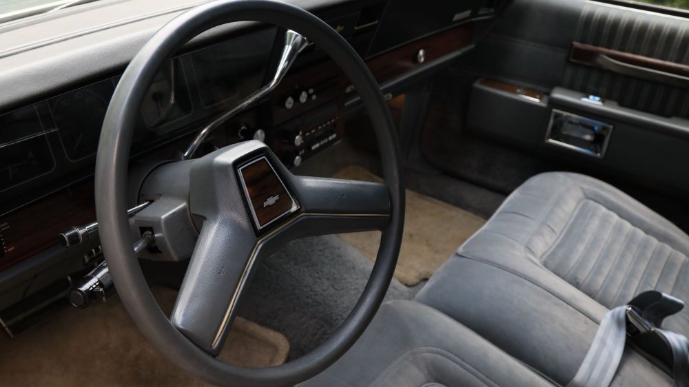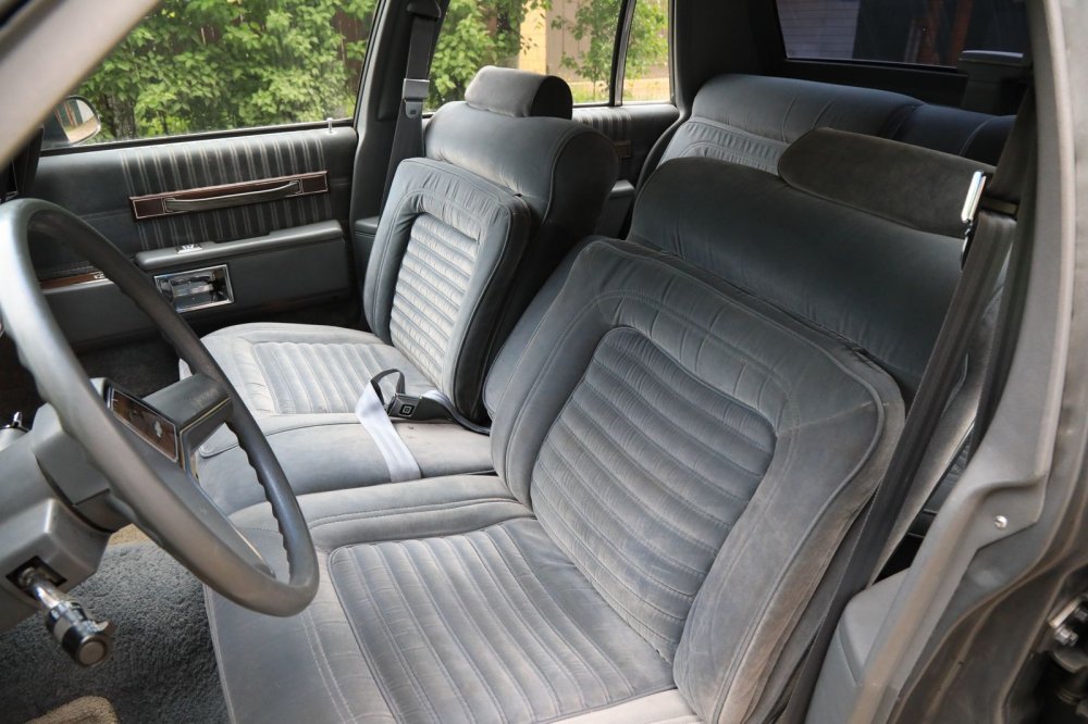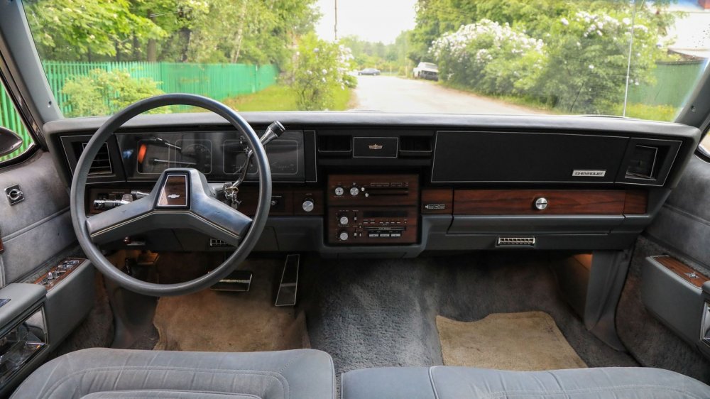 Комплектация Brougham у этого Каприса – самая насыщенная и богатая. Хотя, если откровенно, ничего экстраординарного в салоне нет, причем даже по меркам 1987 года. Есть кондиционер, масса электрорегулировок от зеркал до кресел, управление углом наклона рулевой колонки, выдвигаемая электроприводом телескопическая антенна – по-большому счету, и упомянуть больше нечего…