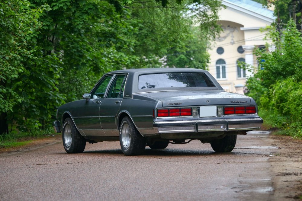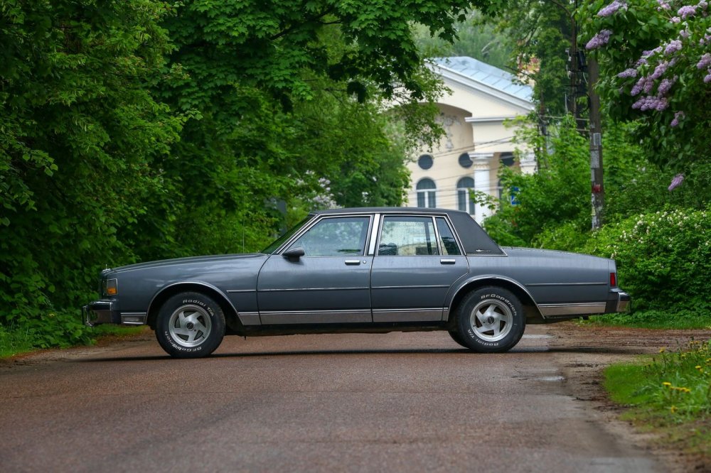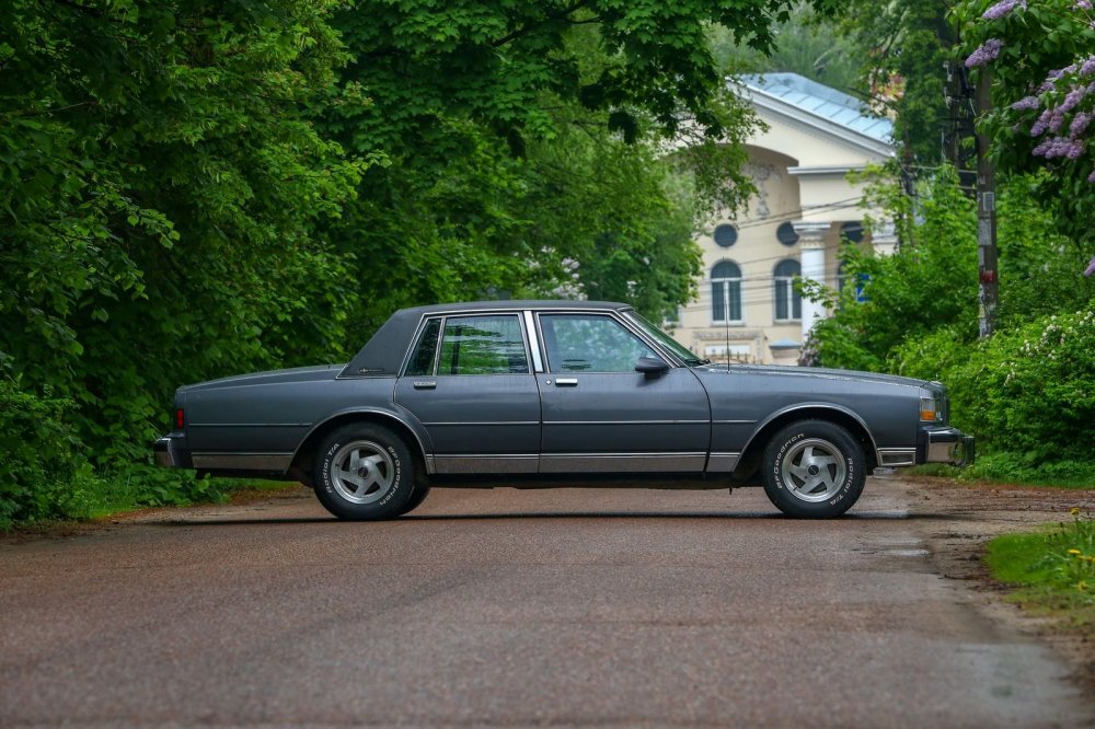 Несмотря на то, что третье поколение «Каприса» изрядно уменьшилось в габаритах (примерно на 300 мм по длине и примерно на 200 мм в колесной базе) по сравнению с более ранними машинами ввиду нефтяного кризиса 70-х, автомобиль по современным меркам без каких-либо натяжек считается настоящим гигантом. Однако «гигантизм» тут чрезвычайно пропорциональный: седан даже строго в профиль не смотрится неуклюжей бескрайней баржей, годной лишь обслуживать цыганские свадьбы и блистать на фестивалях, а воспринимается крепко сбитым и собранным городским здоровяком. Благодарить за этот эффект нужно не только угловатые контуры с укоротившимися свесами, но и огромные и одинаковые по высоте колесные арки, крупные колеса и значительный дорожный просвет.