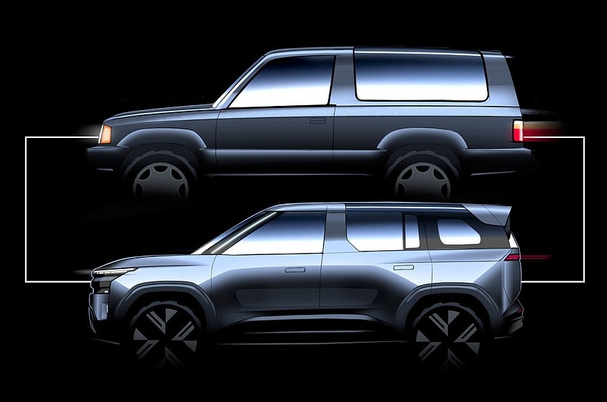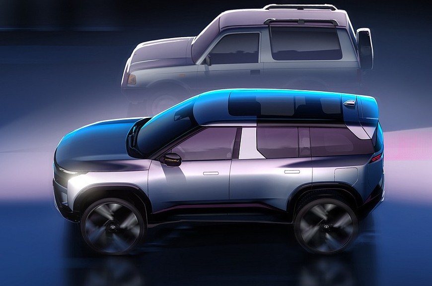 Предсерийный кроссовер Tata Sierra на фоне оригинального внедорожника
