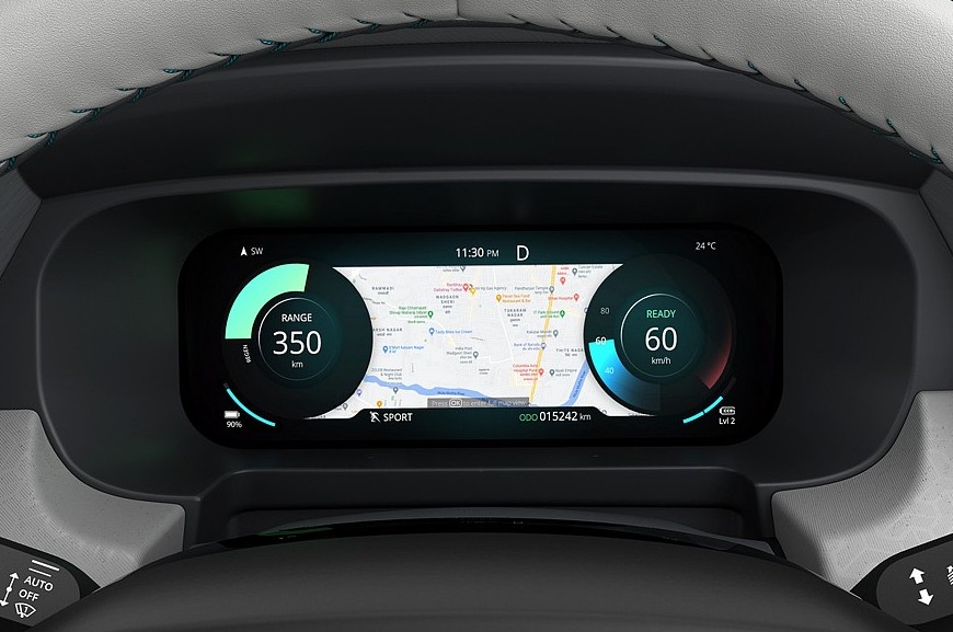 Как и прежде, от бензинового Punch электрокросс отличается оформлением передней части: у него собственные, более узкие диодные ДХО и оригинальный бампер. После рестайлинга Tata Punch EV лишился объединяющих основные фары черных вставок и «прорези». Убрали и дополнительную светящуюся полоску между ходовыми огнями, вместо нее отныне черная плашка. Еще заменили задний бампер и фонари – они такие же, как у свежей топливной модели. Электрокару также достались 16-дюймовые колеса нового дизайна (но в базе идут 15-дюймовые). Наконец, была пересмотрена палитра цветов кузова.